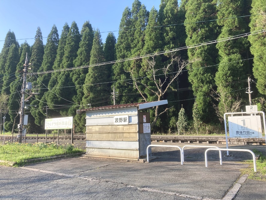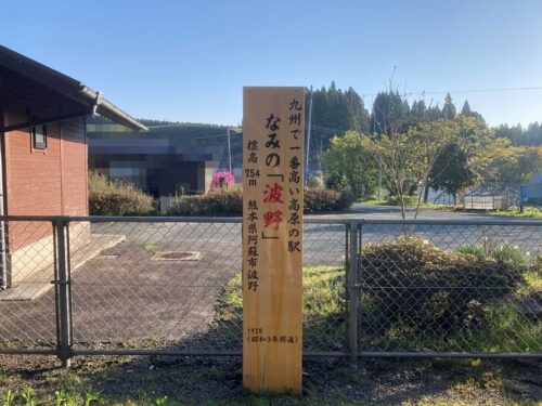 JR波野駅は、熊本と大分を結ぶJR豊肥本線にある無人駅で、九州の鉄道駅の中では最も標高が高い場所に位置し、高原の静けさに包まれたこの駅は、列車の運行本数が4~5時間に1本と少なく、列車が来る時間以外は人影もなく、ひっそりと佇んでいる。訪れる人は少ないながらも、その静寂と高地ならではの澄んだ空気に癒され、鉄道ファンや静かな旅を好む人にとっては、最適な場所となっている。